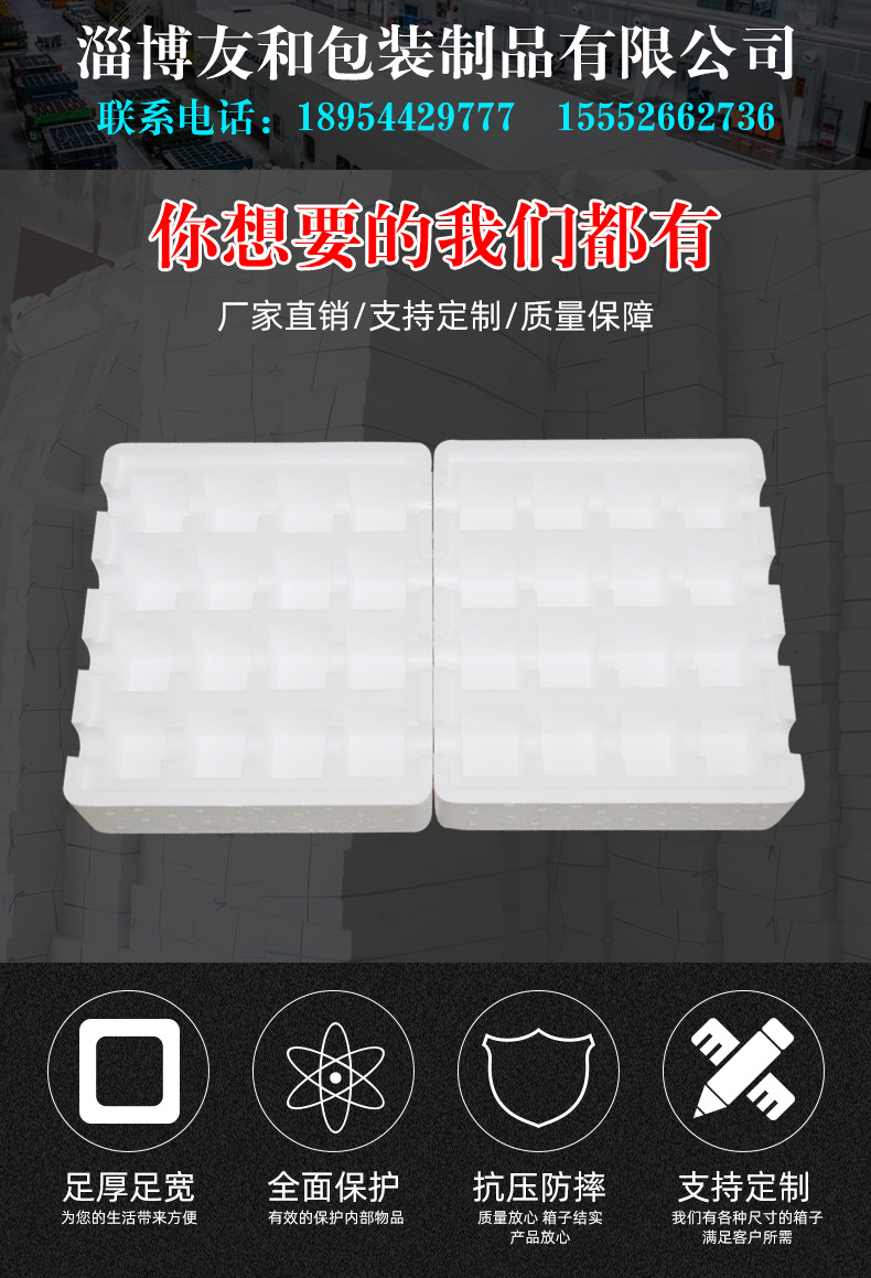 ????淄博友和包裝制品有限公司是專業(yè)的山東泡沫包裝箱加工廠家,本廠主要產(chǎn)品有:泡沫包裝箱,泡沫保鮮箱,水果蔬菜泡沫包裝箱,水果蔬菜泡沫保鮮箱,瓷磚泡沫包裝箱等,產(chǎn)品暢銷全國,深受用戶好評(píng)。泡沫包裝定做可以聯(lián)系我們網(wǎng)站 http://m.wlsaijn.com.cn/ 上電話,我們會(huì)第一時(shí)間跟您聯(lián)系。